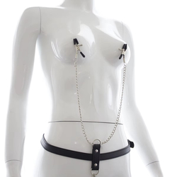 เข็มขัดหนัง PU รัดเอวสำหรับเล่นบทบาททางเพศแบบคลิปหนีบหัวนมสายรัดทาส