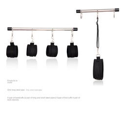 กุญแจมือและที่หุ้มข้อเท้าทำจากฟองน้ำนิ่มหนัง PU ถอดออกได้พร้อมท่อเหล็กสนุกอุปกรณ์ทาสสำหรับของเล่นทางเพศ SM