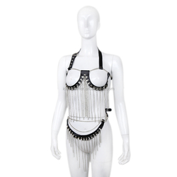 BDSM ชุดชั้นในสตรีสายโซ่หนังแท้สำหรับไนท์คลับชุดคอสเพลย์