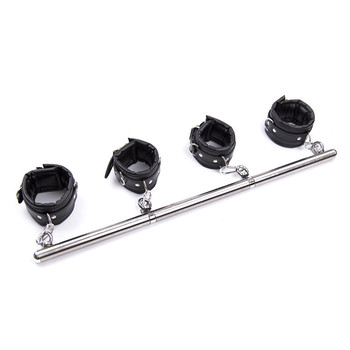 Esposas y tobilleras de esponja suave de cuero PU extraíbles con tubo de acero, equipo de Bondage divertido para juguetes sexuales SM